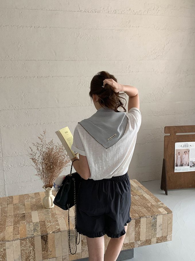 • 品名:(附絲巾)寬鬆正肩短袖上衣