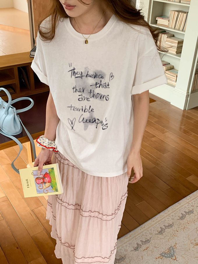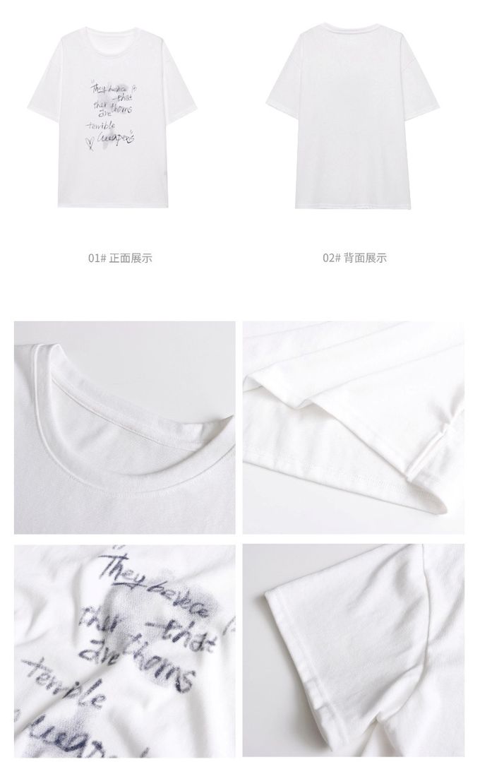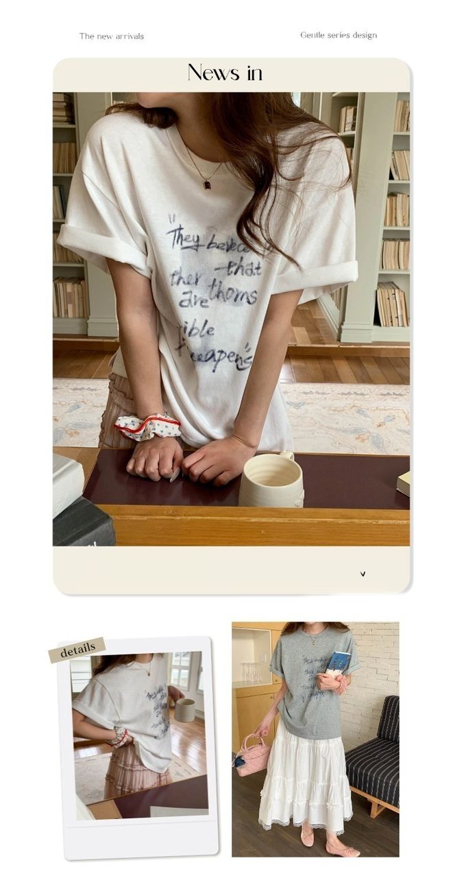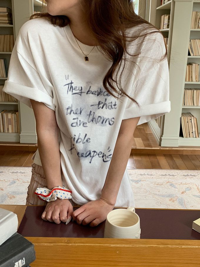 3th Morning - 寬鬆落肩短袖上衣-慵懶文字-白 (F)