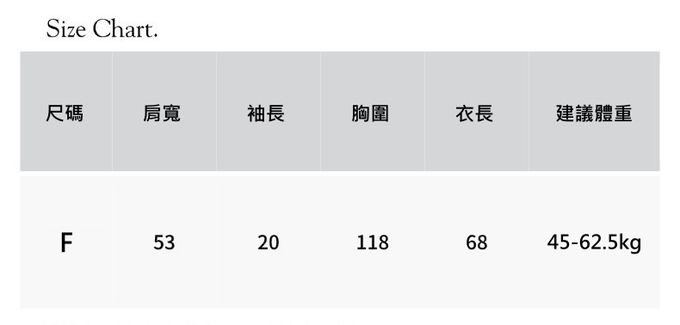 1. 尺寸表單位皆為公分(cm),商品皆為平鋪測量,實際尺寸會因布料彈性、水洗、測量起迄點等因素略有誤差,敬請諒解。