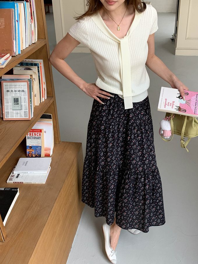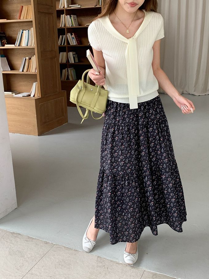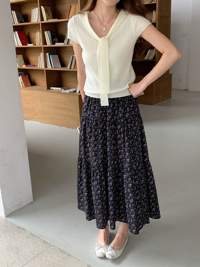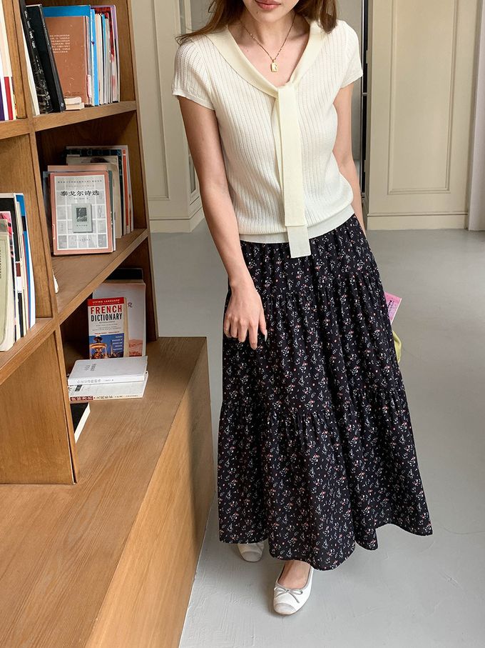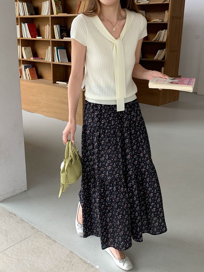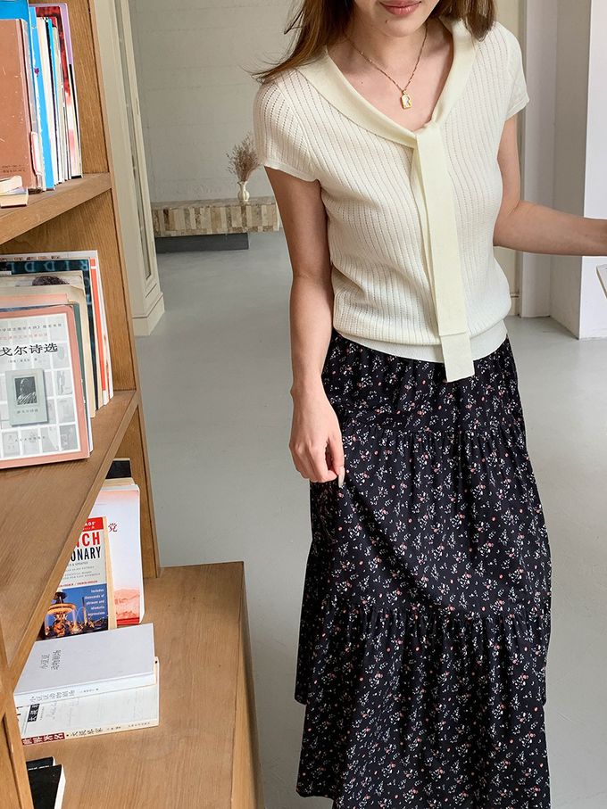 3th Morning - 溫柔V領綁帶短袖針織衫-白 (F)