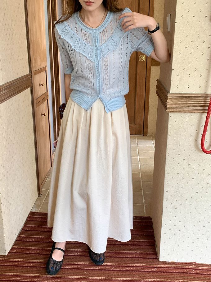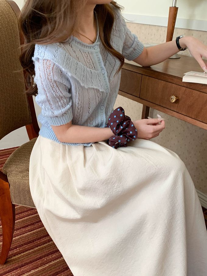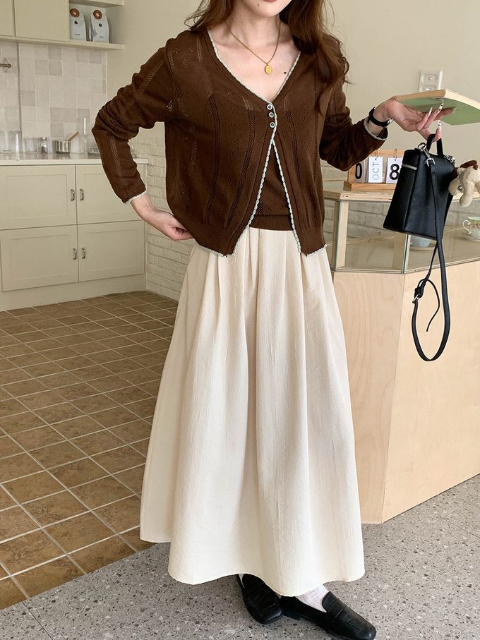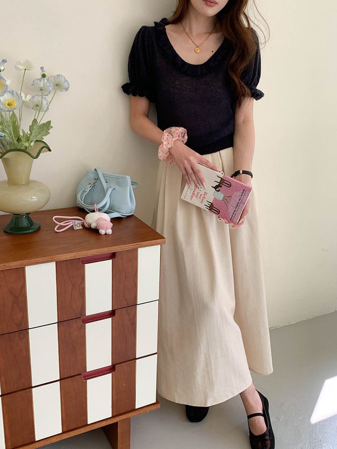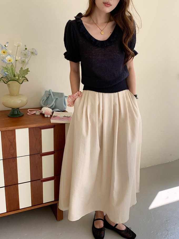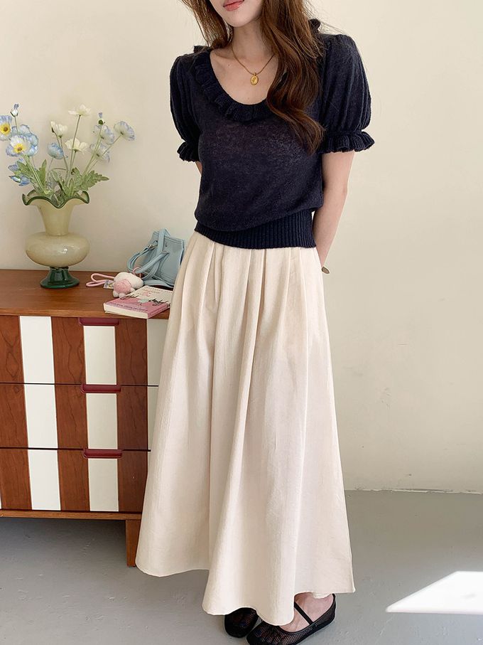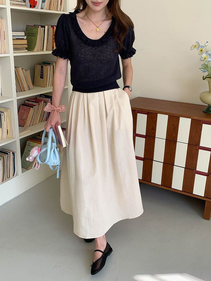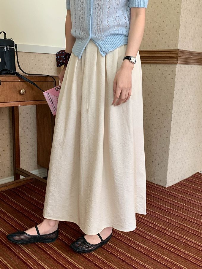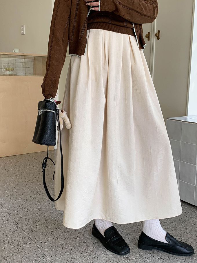 3th Morning - 法式質感抓褶紋理長裙-米杏