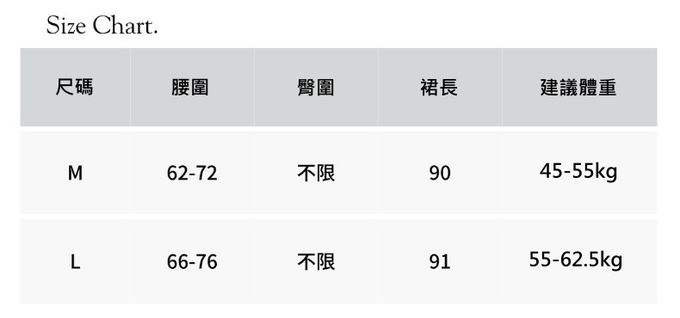 1. 尺寸表單位皆為公分(cm),商品皆為平鋪測量,實際尺寸會因布料彈性、水洗、測量起迄點等因素略有誤差,敬請諒解。