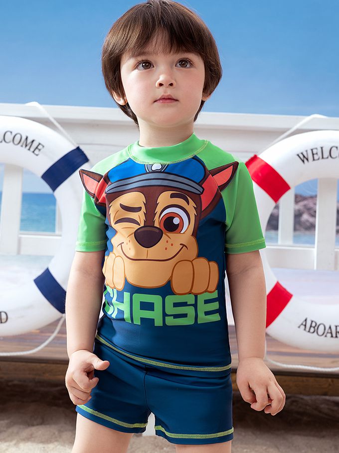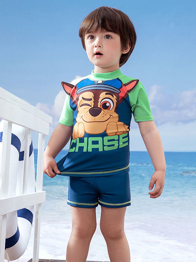 UPF50+短袖泳裝套裝-卡通人物阿奇-藍綠色