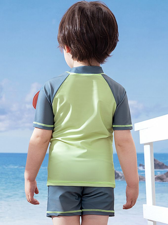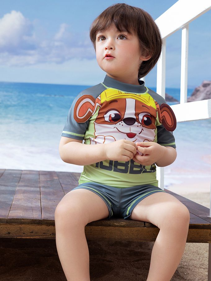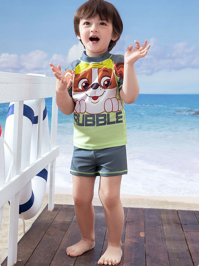 UPF50+短袖泳裝套裝-卡通人物小礫-黃灰色