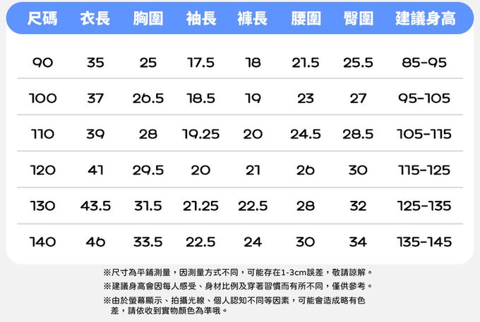 90cm、100cm、110cm、120cm、130cm、140cm