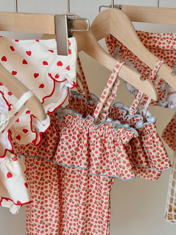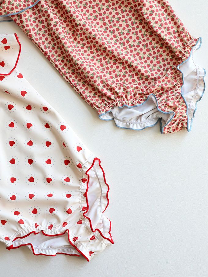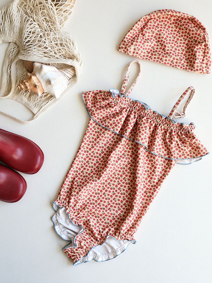 UPF50+細肩帶連身泳裝(附泳帽)-滿滿愛心
