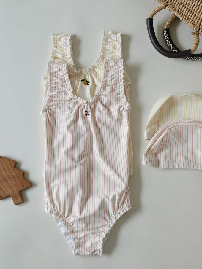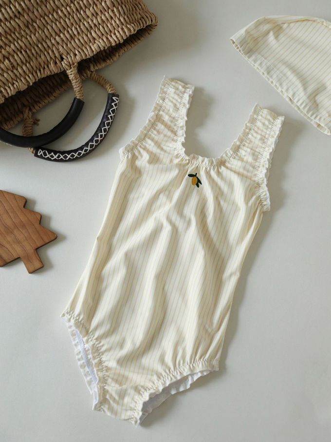 UPF50+U型連身泳裝(附泳帽)-黃條紋