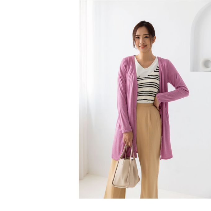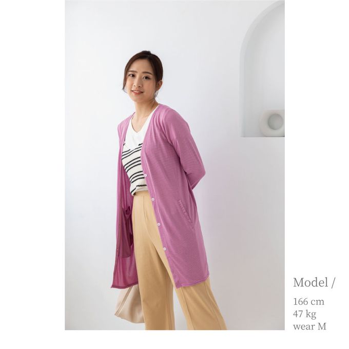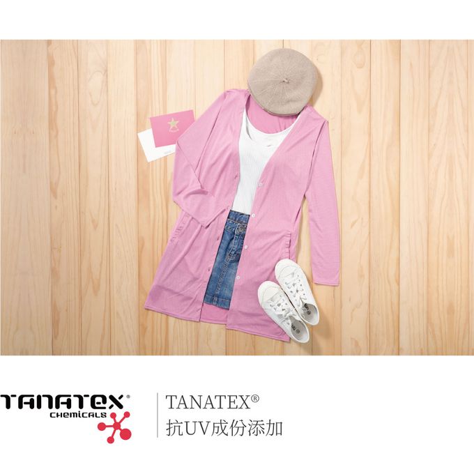 日本水潤白抗UV保濕防曬長版罩衫-V領長版-莓果粉
