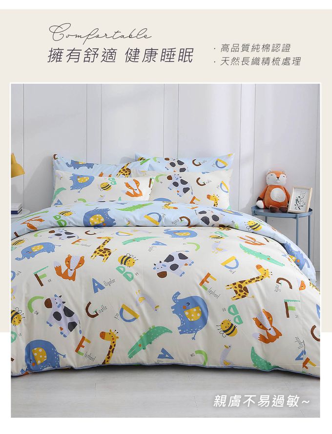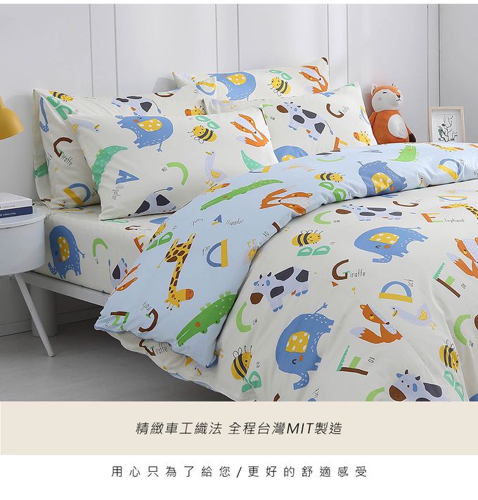 雙人床包枕套組 防蹣抗菌100%美國棉-動物ABC-米