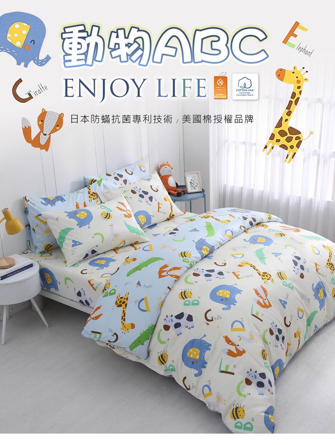 單人兩用被5x7 防蹣抗菌100%美國棉-動物ABC-米
