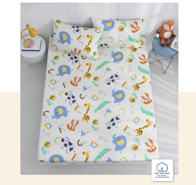 單人薄被套床包組 防蹣抗菌100%美國棉-動物ABC-米