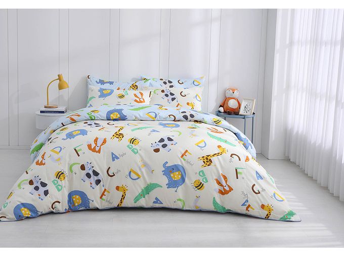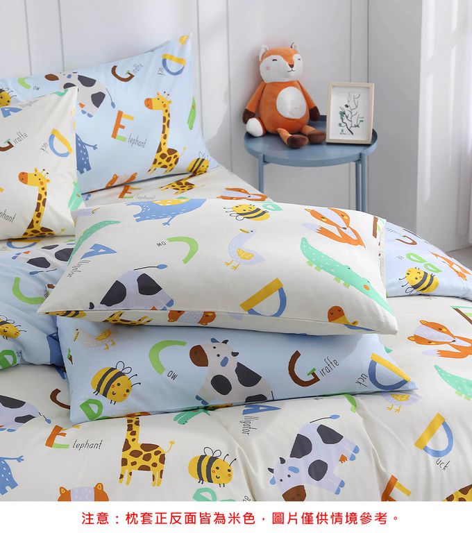 雙人薄被套床包組 防蹣抗菌100%美國棉-動物ABC-米