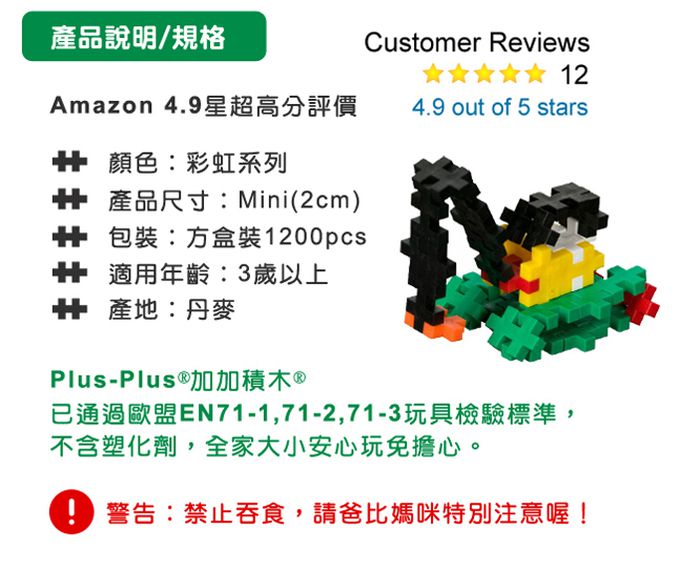 ◆ ‧每塊積木上都有Plus-Plus註冊字樣