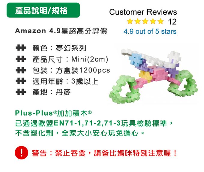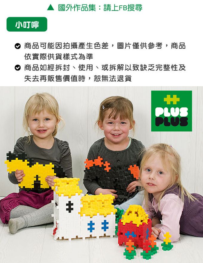 ◆ ‧每塊積木上都有Plus-Plus註冊字樣