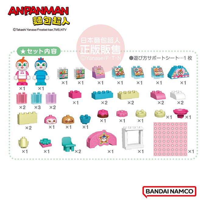 組合內容:共42個積木及配件(內含紅精靈、藍精靈人偶*各1)、玩法指引(日語)*1