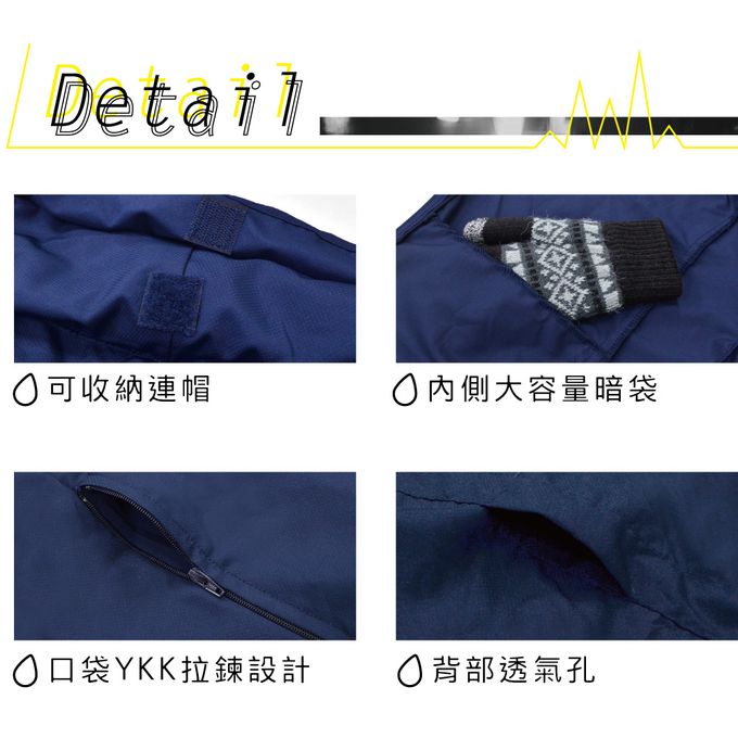 可隱藏連帽設計,內側大容量暗袋