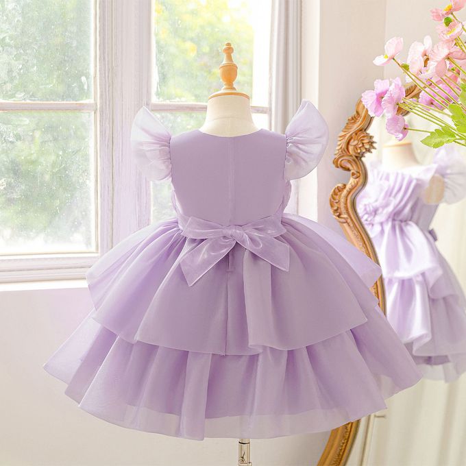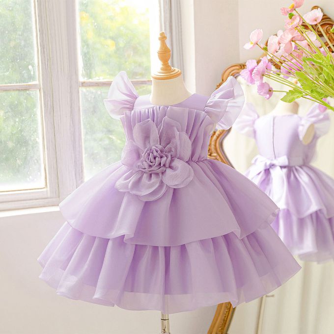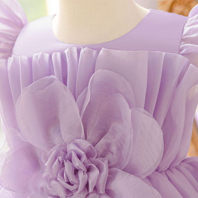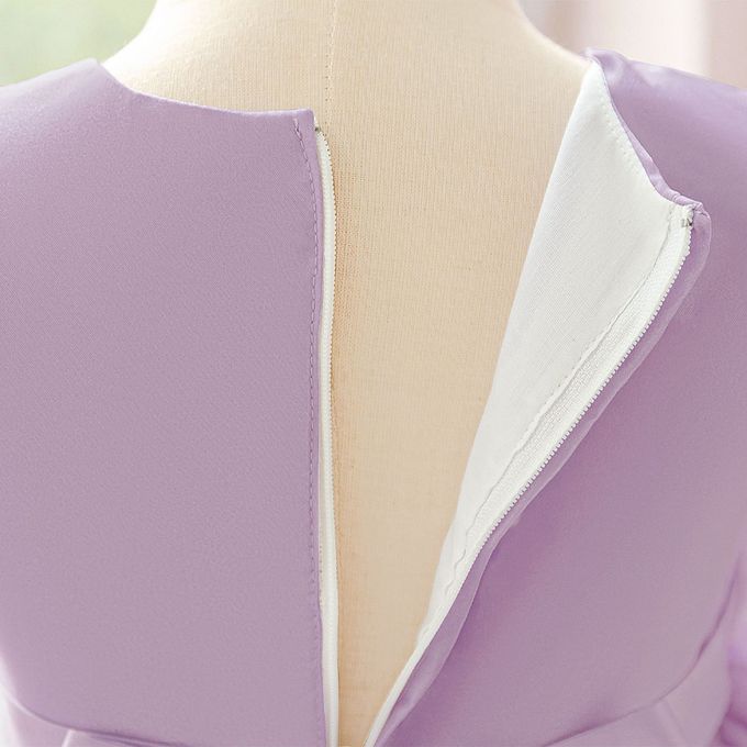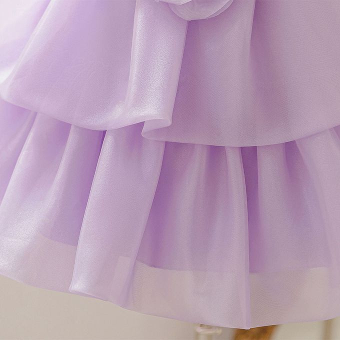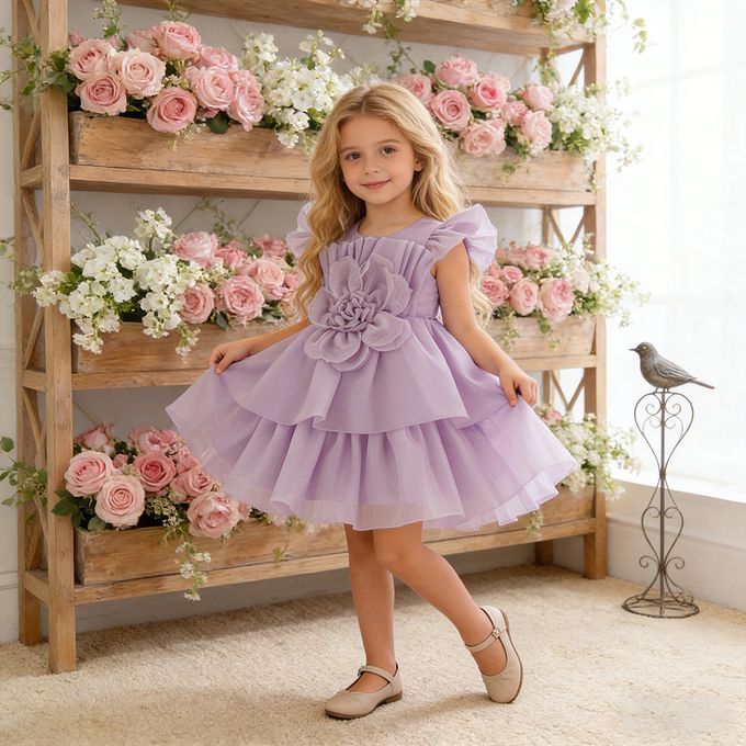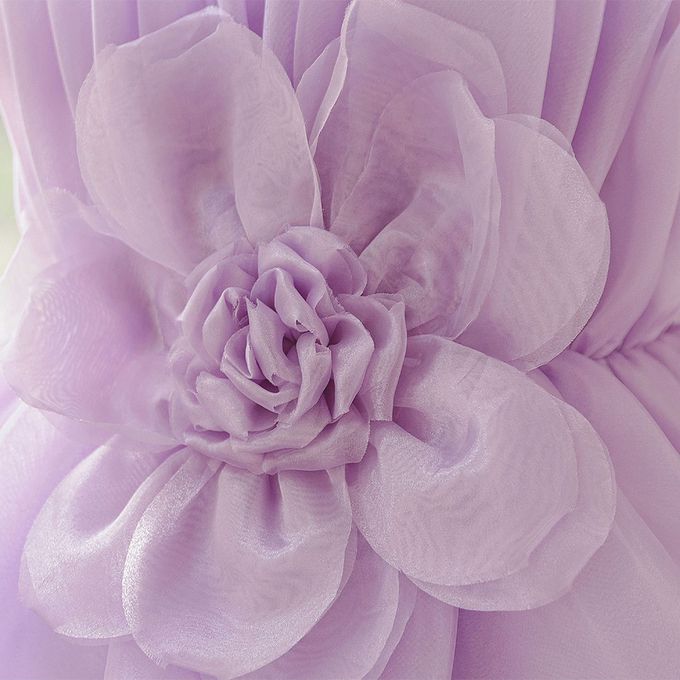 薰衣草紫疊層紗裙搭配大花飾點綴