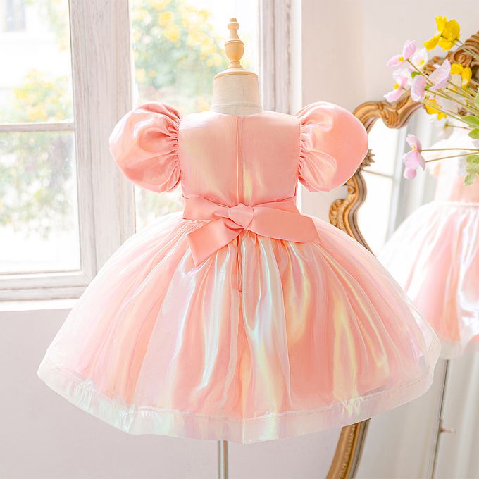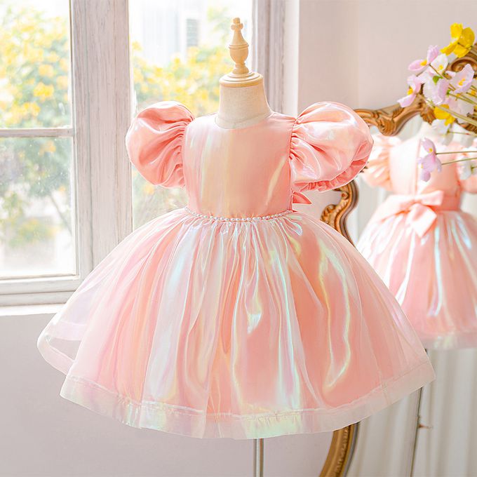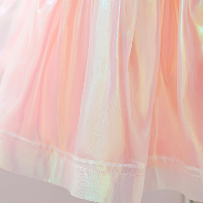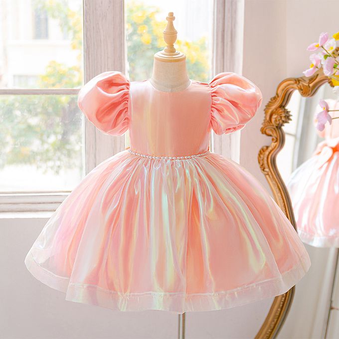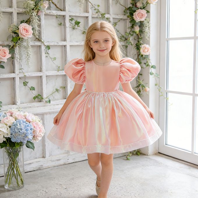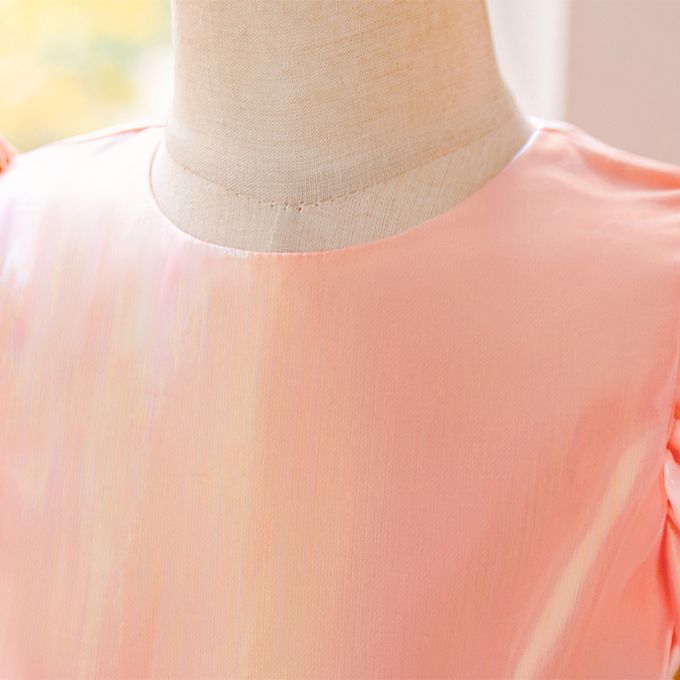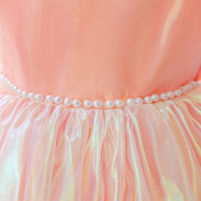 幻彩霓虹珍珠腰飾澎袖禮服-粉色