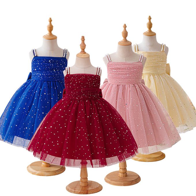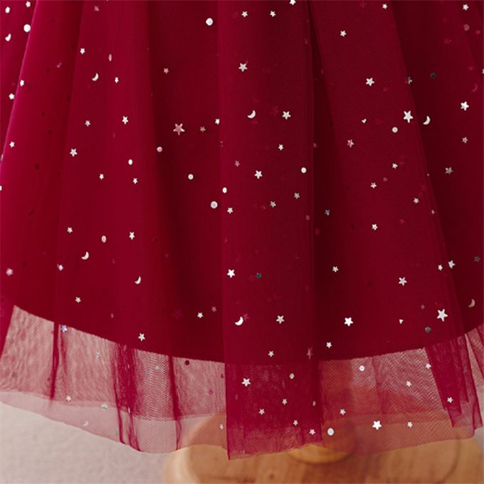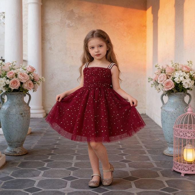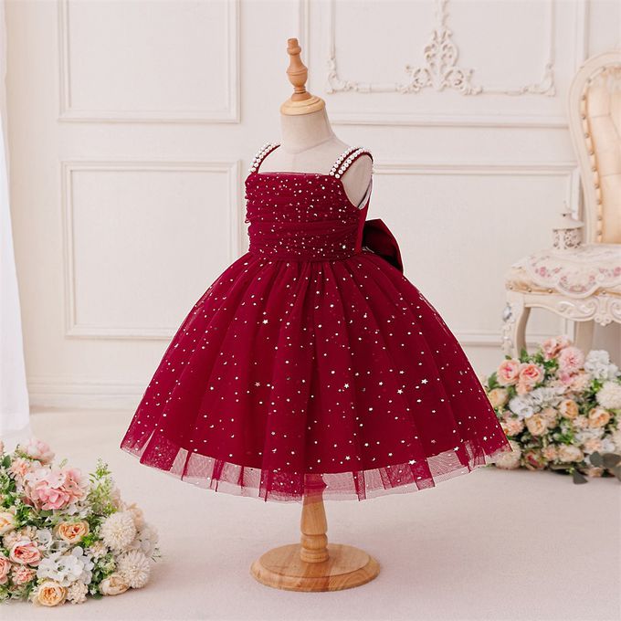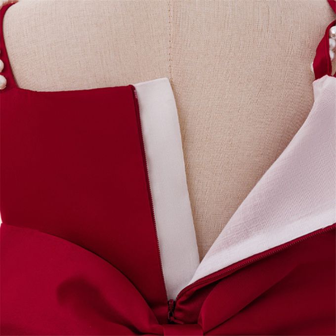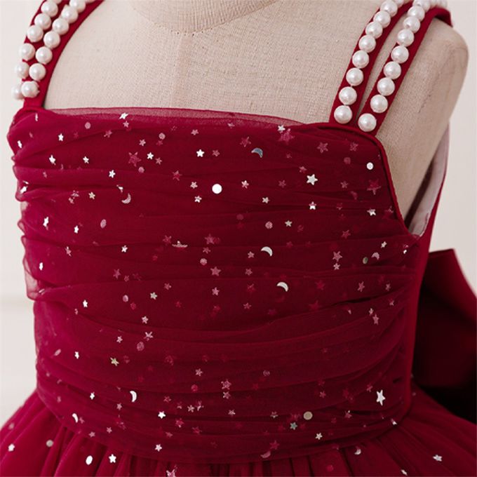 珍珠細肩帶星光亮片網紗禮服-紅色