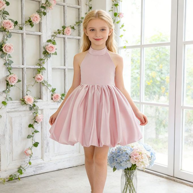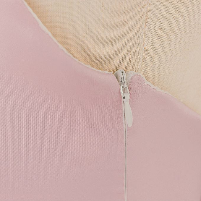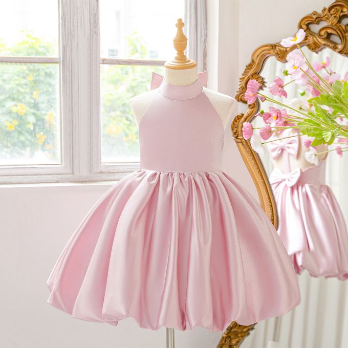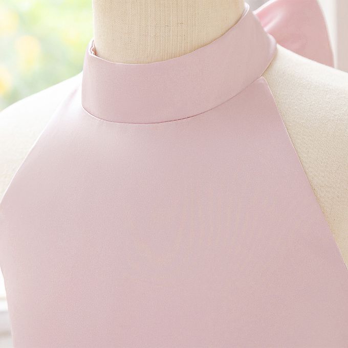 法式削肩露背蝴蝶結綴飾禮服-粉色