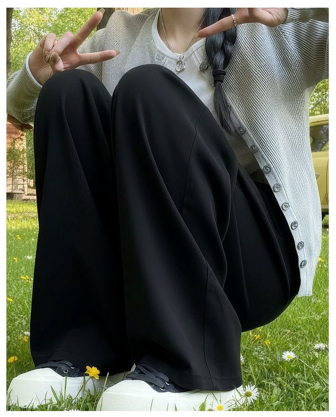 Lusairé - 接觸涼感冰絲顯瘦直筒褲-黑