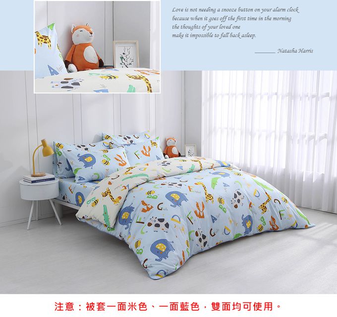 單人薄被套5x7 防蹣抗菌100%美國棉-動物ABC-藍
