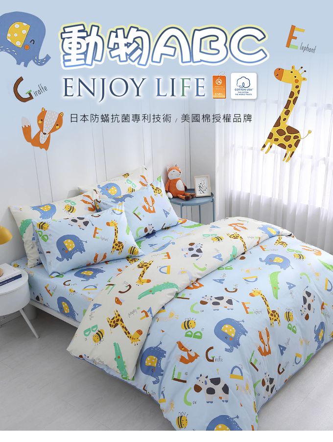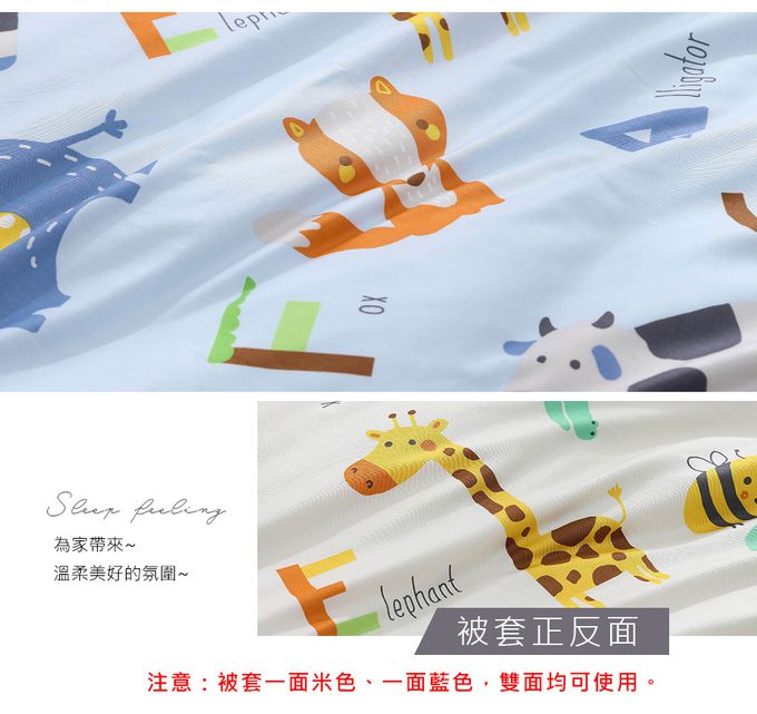 雙人兩用被6x7 防蹣抗菌100%美國棉-動物ABC-藍