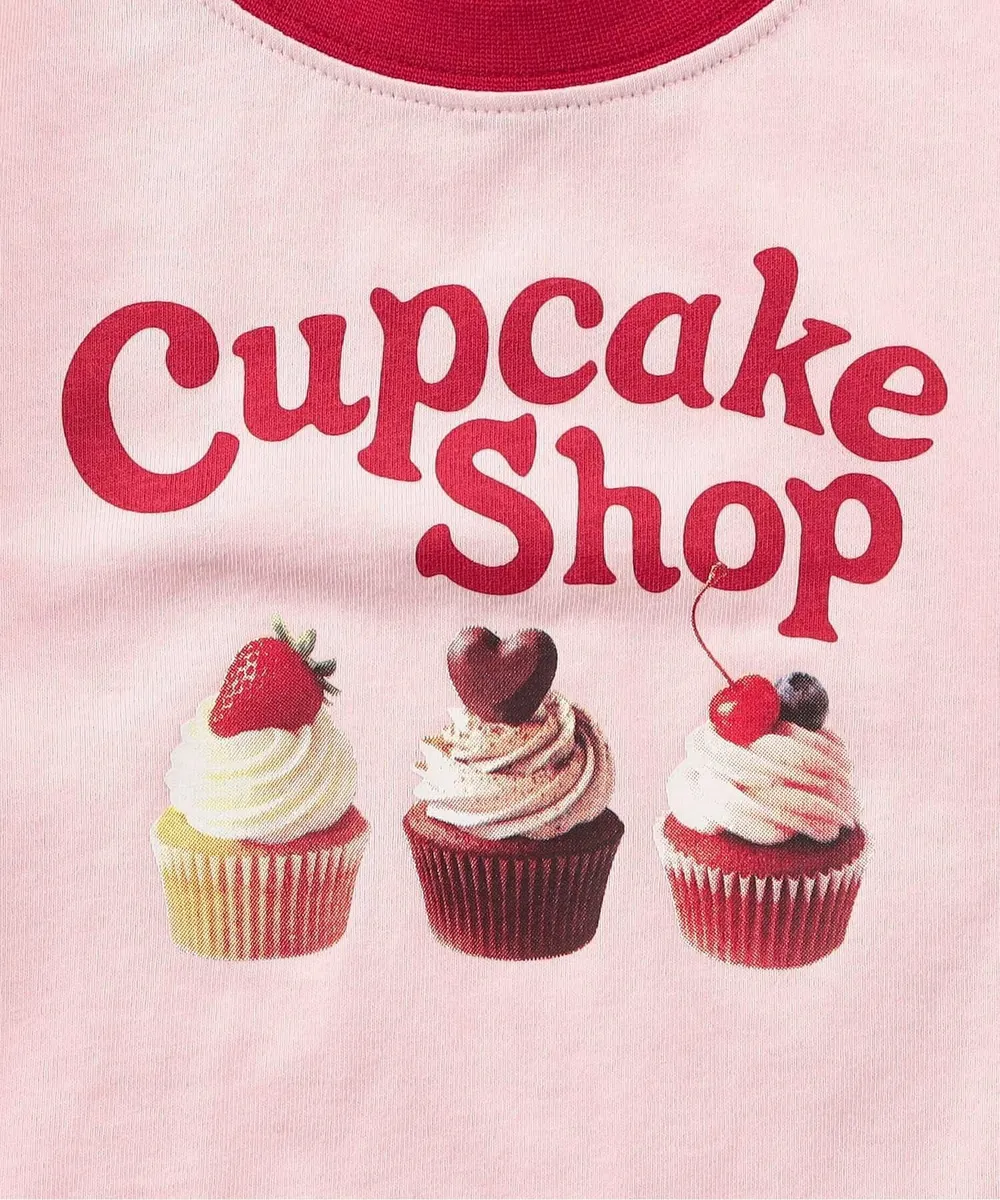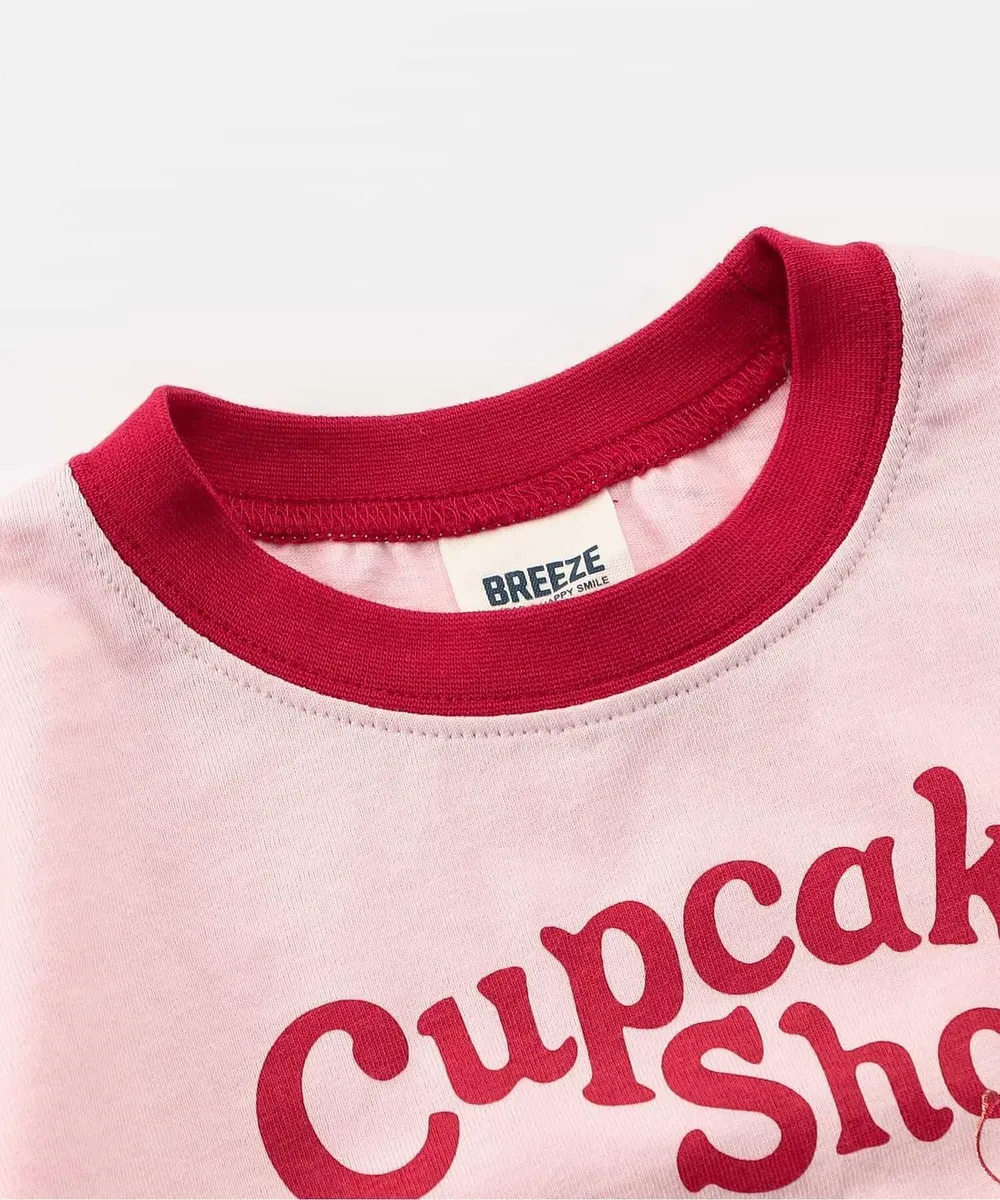 日本 BREEZE - 可愛食物印花短袖上衣-杯子蛋糕-粉紅