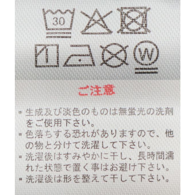 注意事項:●標示內容遵照台灣法規之規定。●請使用不含螢光增白劑的洗劑。●洗滌後請立即晾乾,避免長時間處於潮濕狀態。