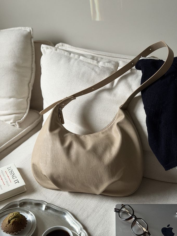 採用柔軟合成皮革,特色在於柔軟觸感與自然形成的皺褶質感。建議以「表面清潔」方式進行保養,避免水洗。