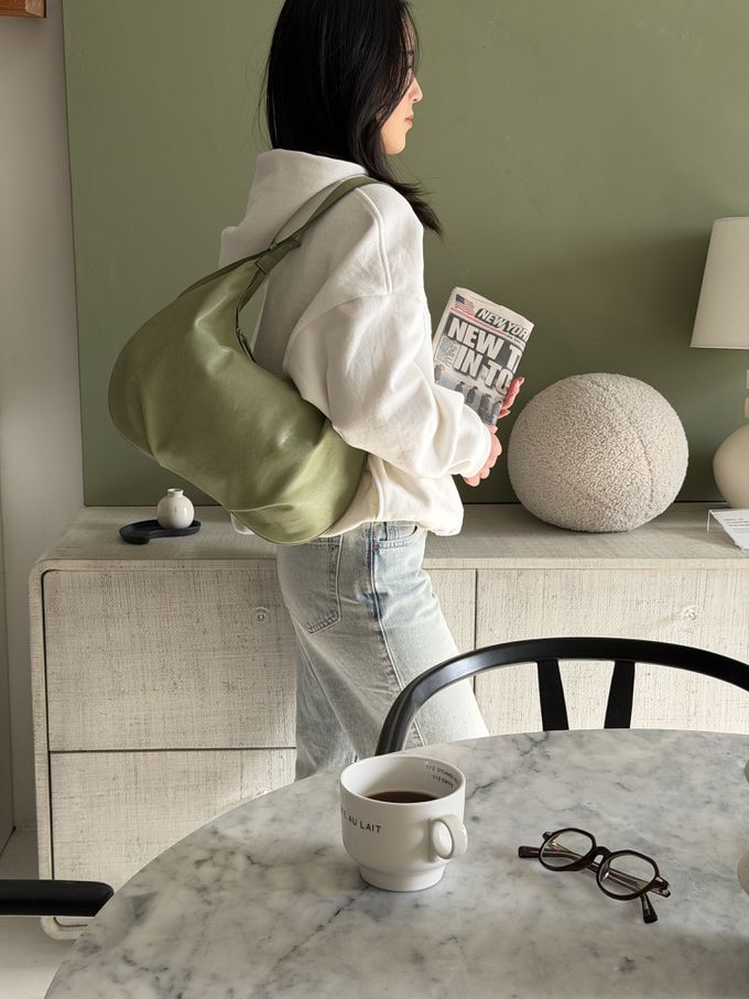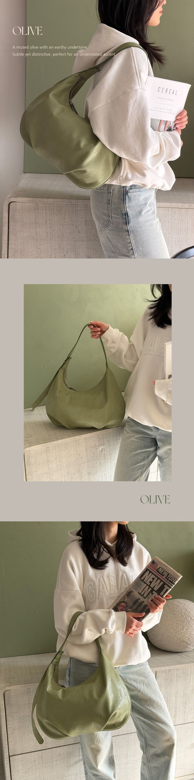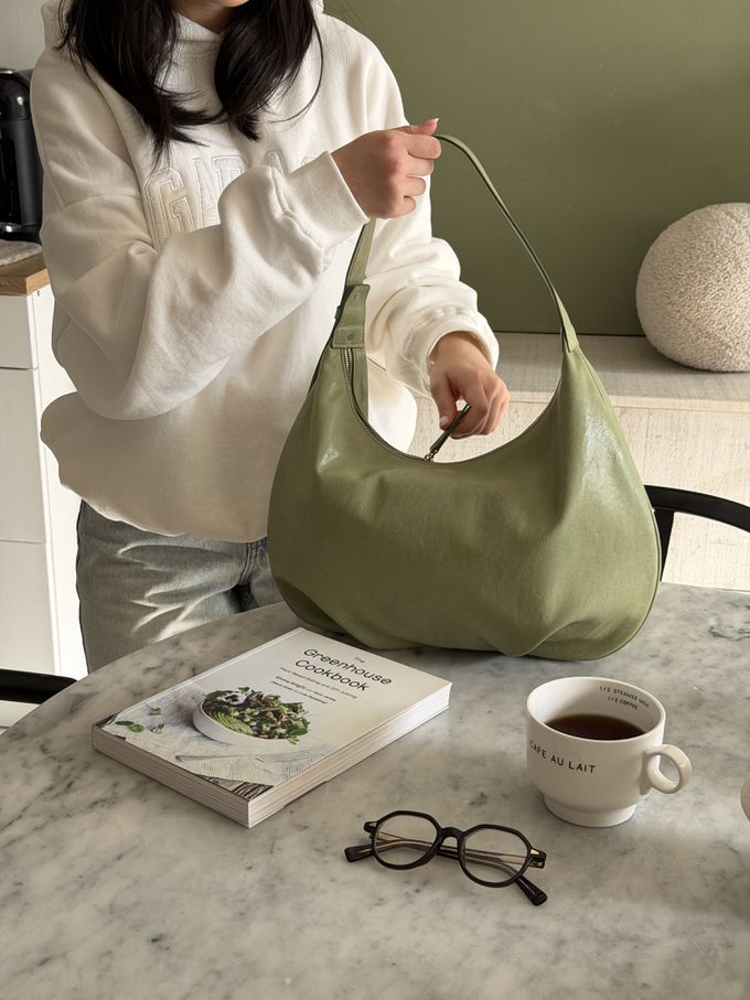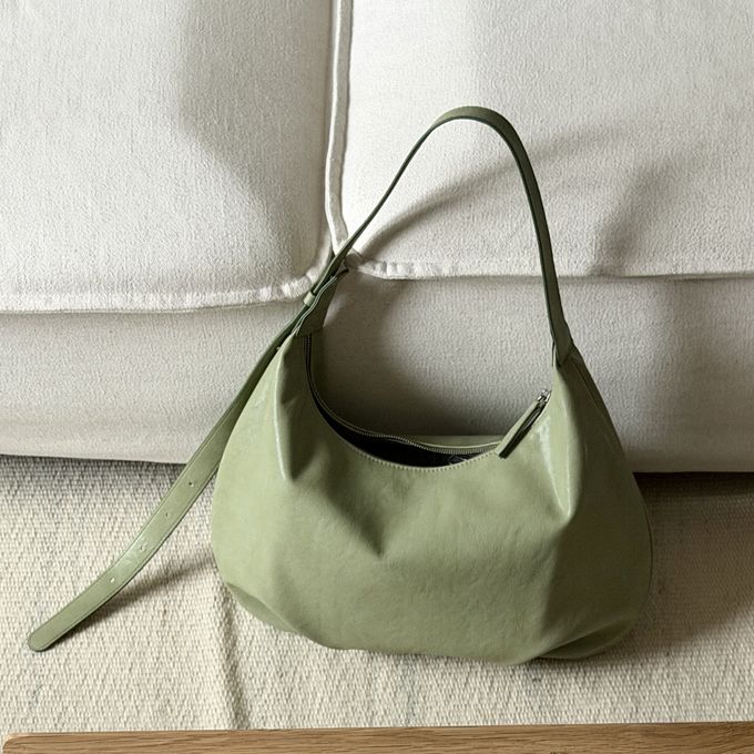 韓國 THEALLY - 小眾設計 質感輕量皮革肩背彎月包 (綠)