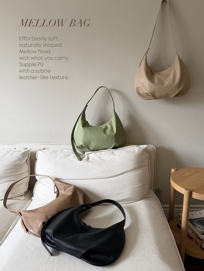 • 品名:小眾設計 質感輕量皮革肩背彎月包