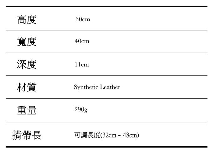 • 詳細尺寸:40*30*11cm,肩背帶長32~48cm
