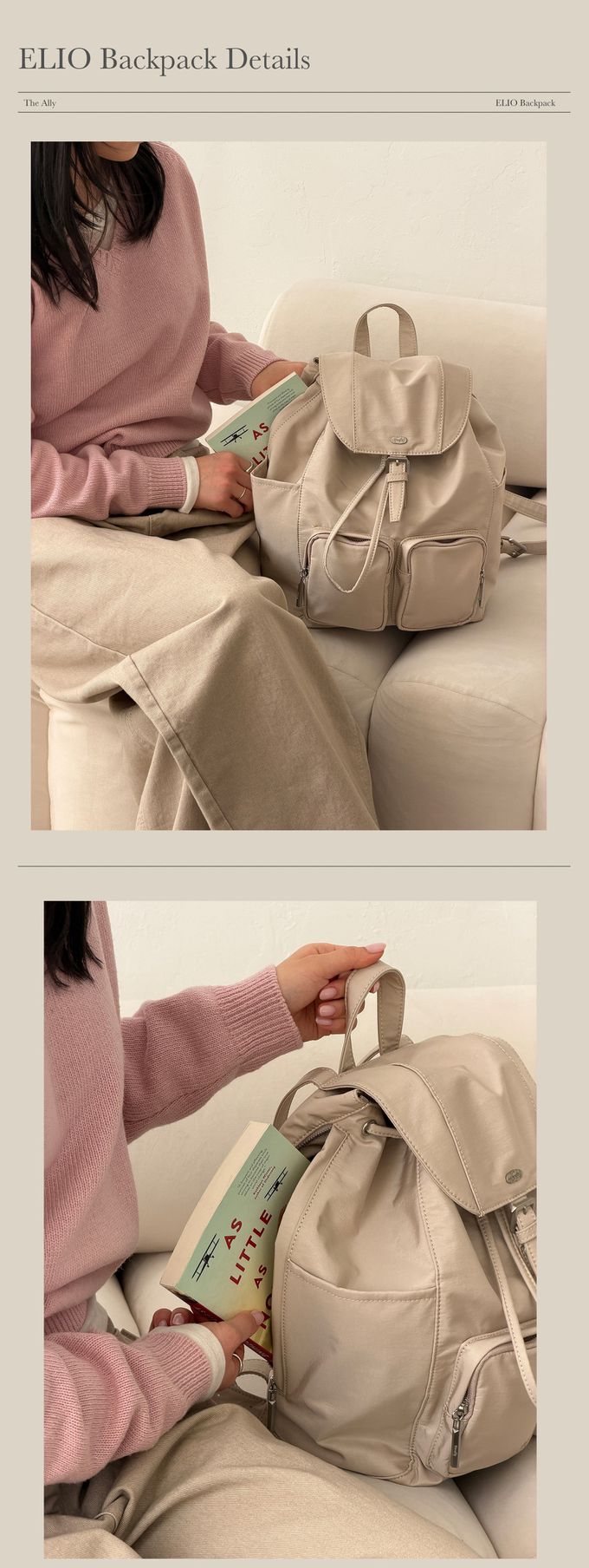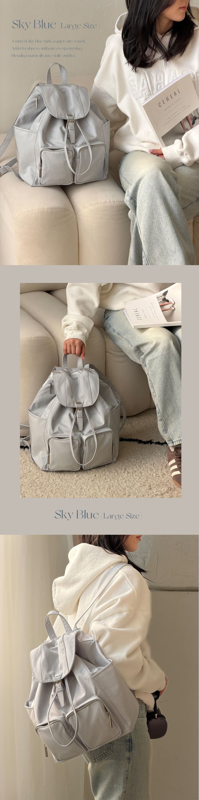 韓國 THEALLY - 小眾設計 高雅霧面生活防水尼龍後背包-淺霧藍 (L[29x37x16cm])