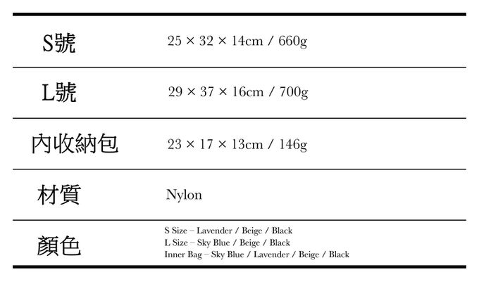 • 採用高密度生活防潑水尼龍材質(表布/內裡皆同材質)