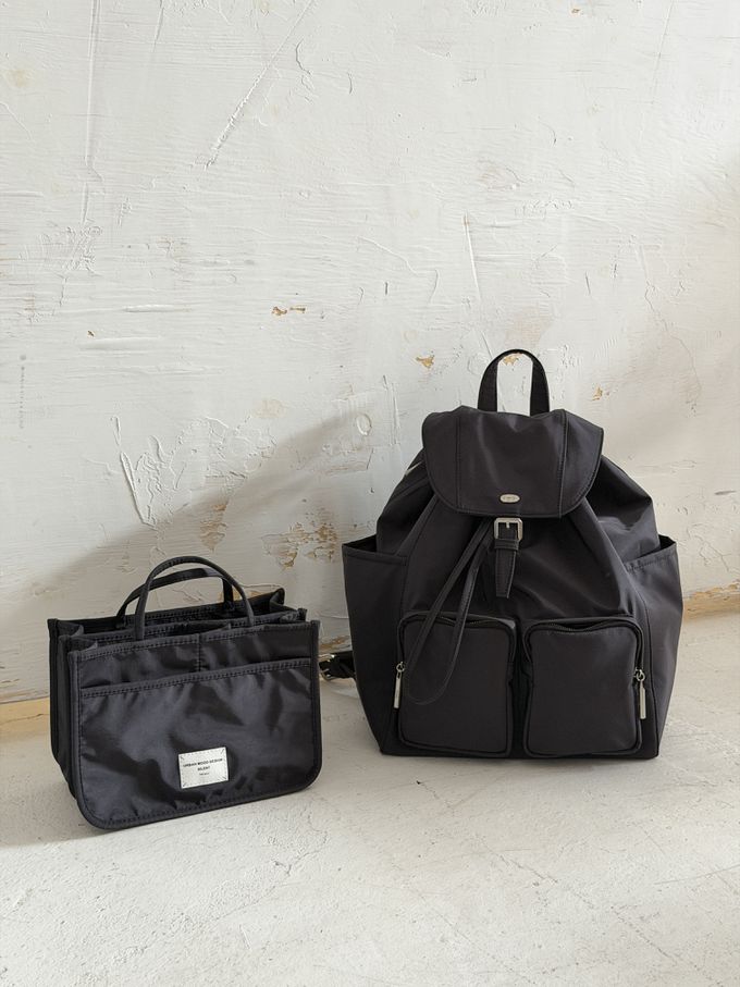 韓國 THEALLY - 小眾設計 多夾層內分隔分裝收納包-黑 (23x17x13cm)