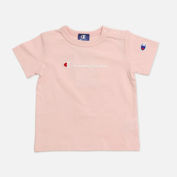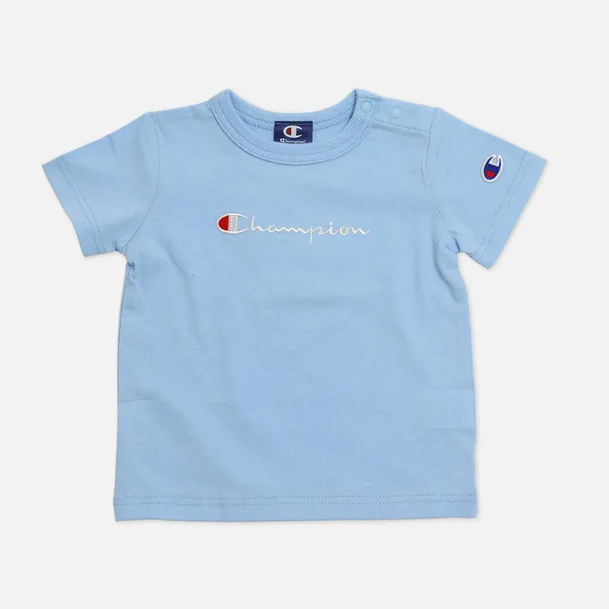 日本 Chil2 - Champion聯名 純棉刺繡LOGO短袖上衣-水藍