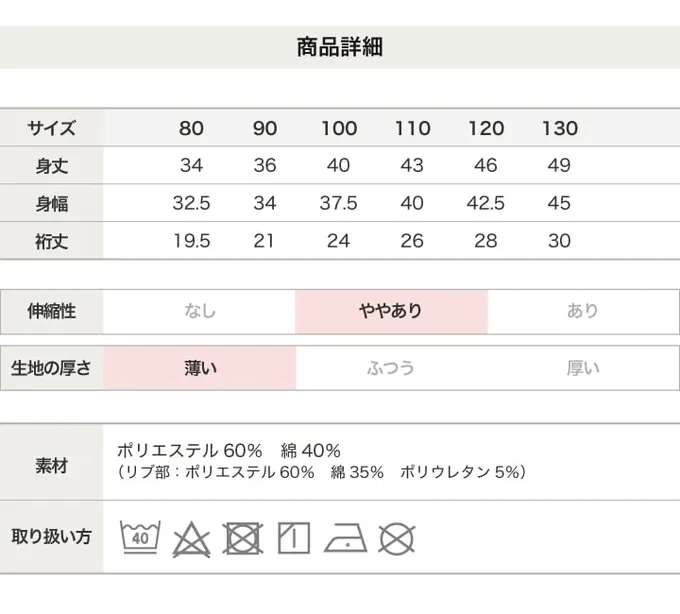 • 成分:聚酯纖維60%, 棉40%,羅紋:棉60%、聚酯纖維35%、彈性纖維5%