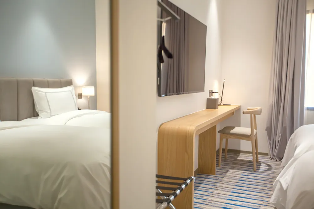 高雅簡約家具打造溫馨的居家風格,兼具商務與休閒機能,房型為兩小床,每間具有大型55吋電視,提供您更自由的休憩空間。