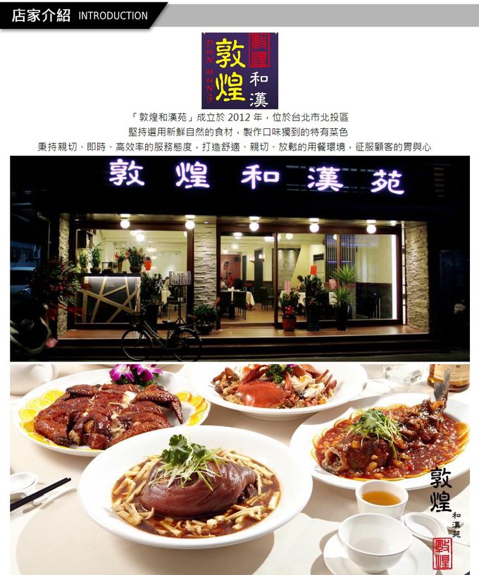 1.單張券可六人於《敦煌和漢苑》餐廳享用平日六人套餐乙客。(已含服務費)