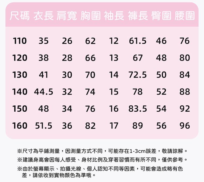 110cm、120cm、130cm、140cm、150cm、160cm