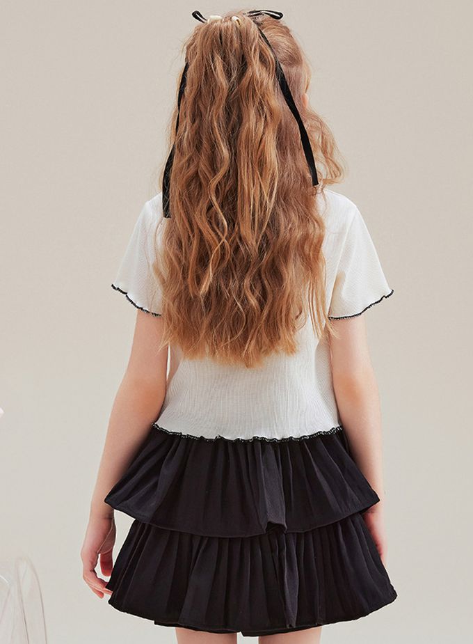 品名:木耳邊短袖上衣+層次短裙套裝