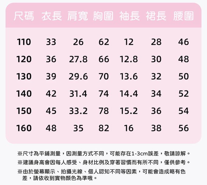 110cm、120cm、130cm、140cm、150cm、160cm