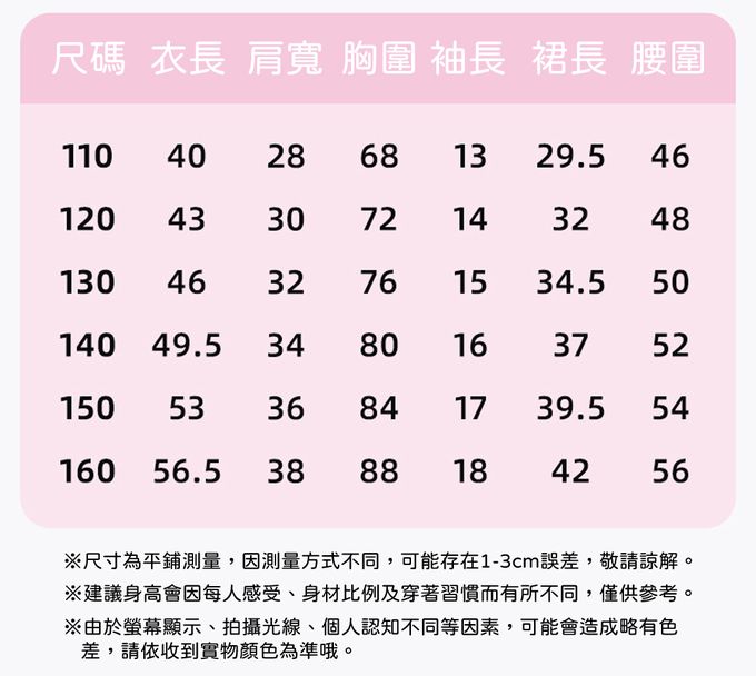 110cm、120cm、130cm、140cm、150cm、160cm