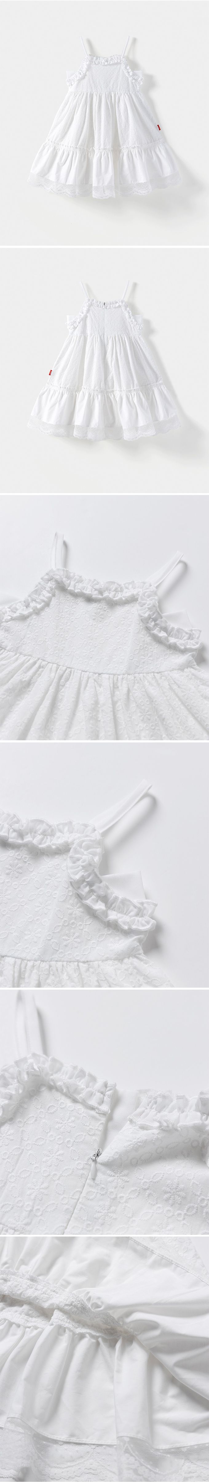 韓國 OZKIZ - 高雅刺繡蕾絲花邊細肩帶洋裝-白