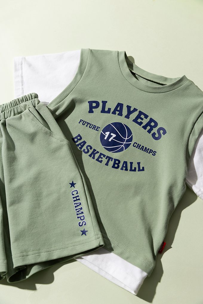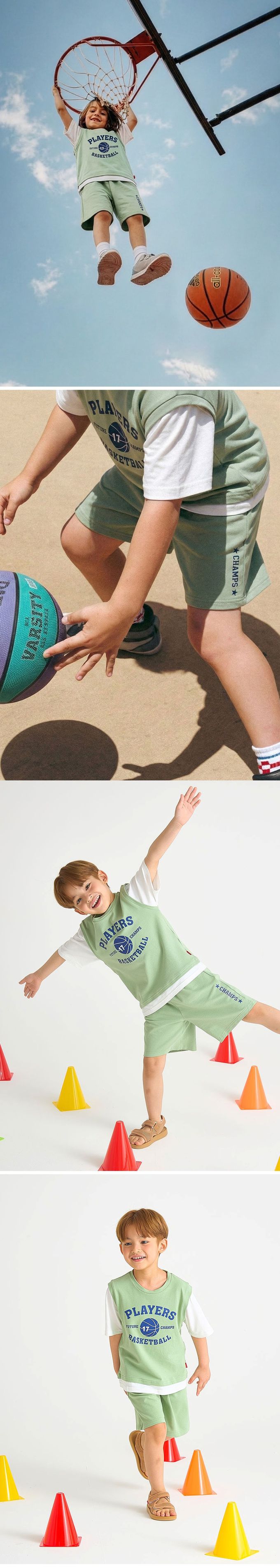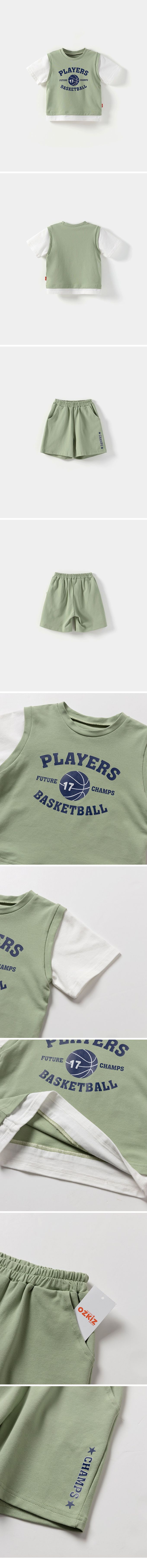 韓國 OZKIZ - 假兩件籃球圖案短袖套裝-綠