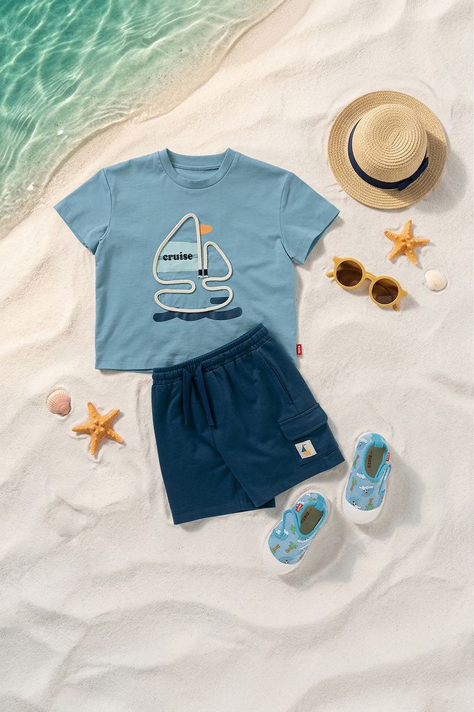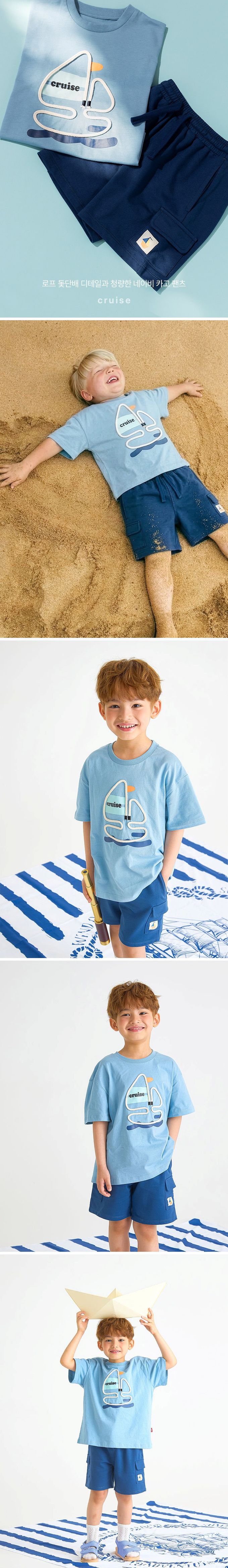 韓國 OZKIZ - 棉繩帆船裝飾短袖套裝-藍