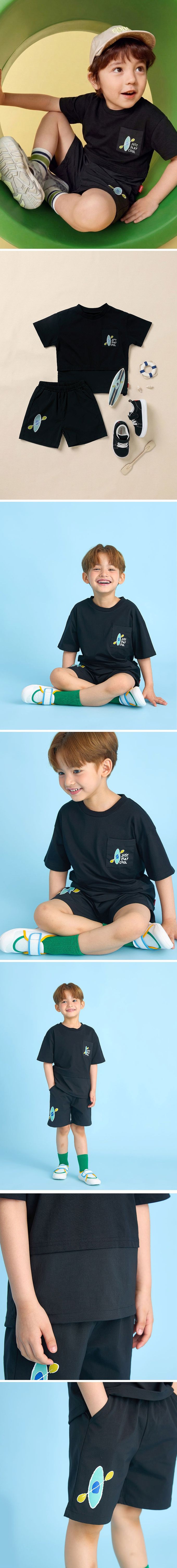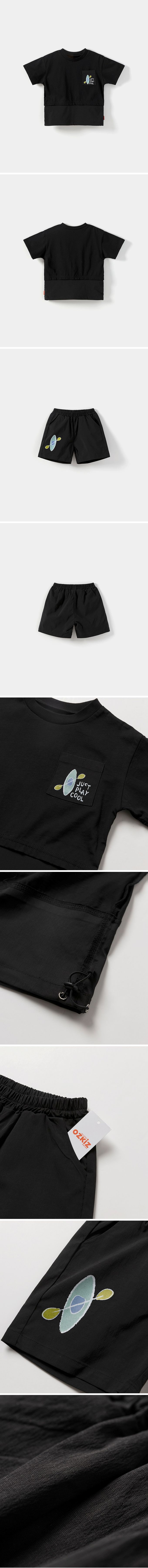 韓國 OZKIZ - 手繪獨木舟圖案短袖套裝-黑