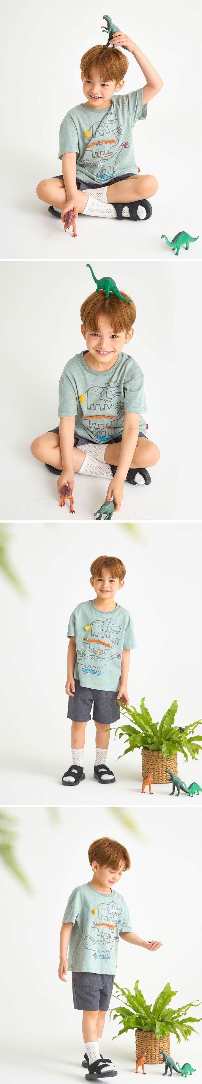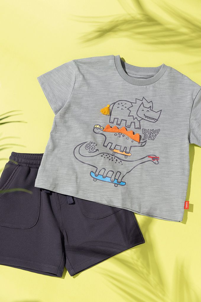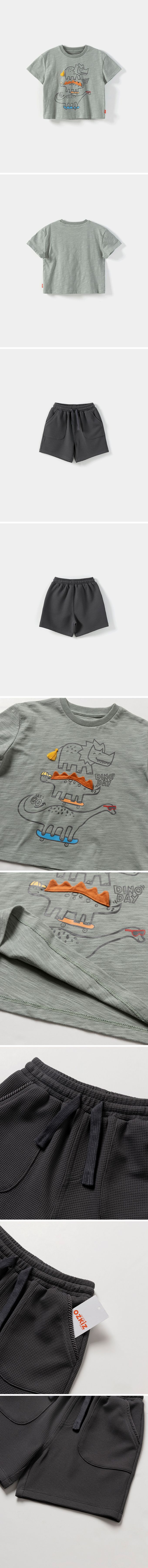 韓國 OZKIZ - 嬉皮恐龍塗鴉短袖套裝-灰綠X深灰