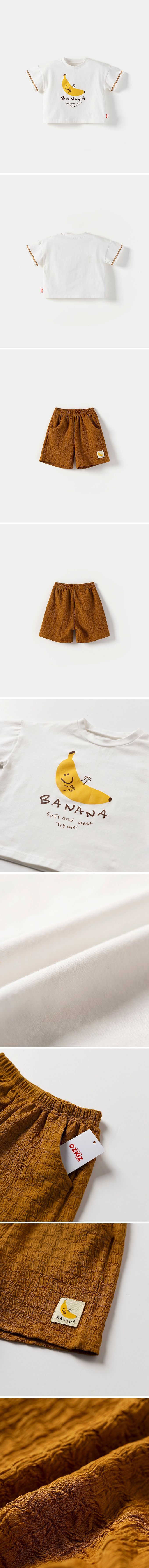 韓國 OZKIZ - 童趣抱抱香蕉圖案短袖套裝-白X焦糖棕
